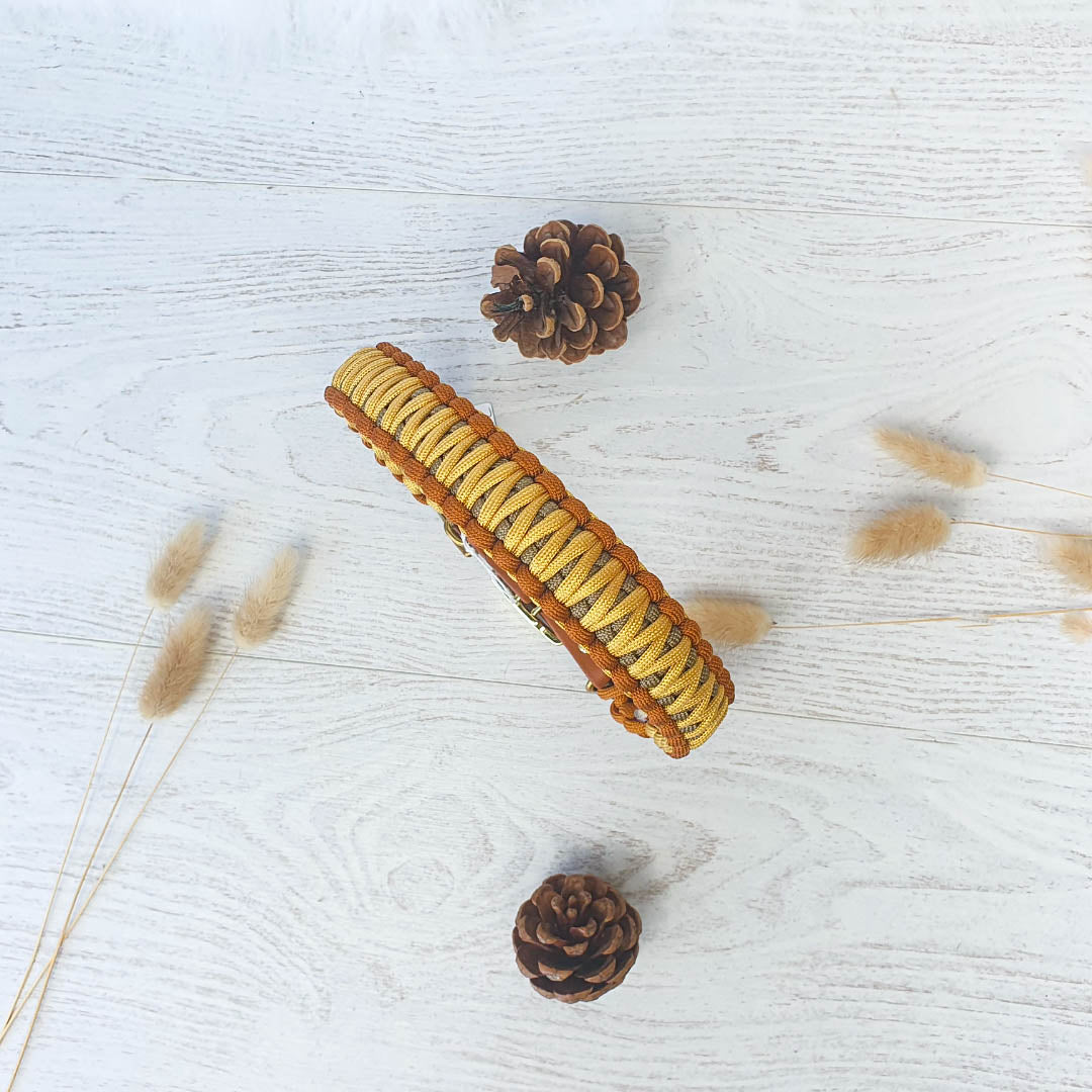 Tressé à la main en paracorde et BioThane®, il allie douceur, résistance et confort.