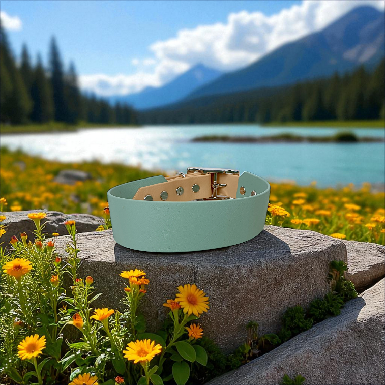 Inspiré des vastes rivières sauvages et des aventuriers qui les parcourent, le collier Yukon allie robustesse et élégance. Conçu en biothane de 38 mm de largeur et affiné à 25 mm au niveau de l’attache, il est à la fois résistant, souple, léger et facile à nettoyer.