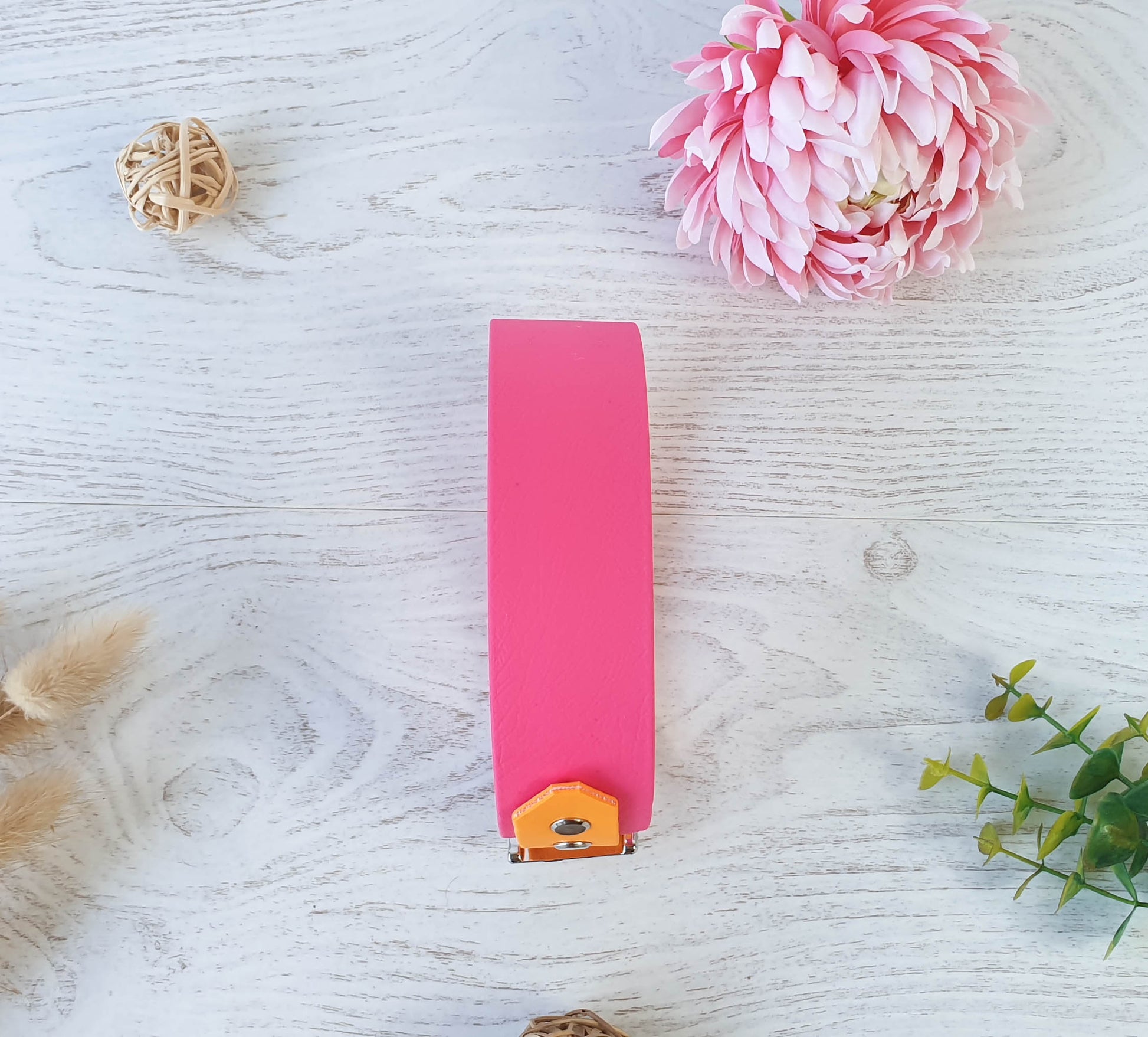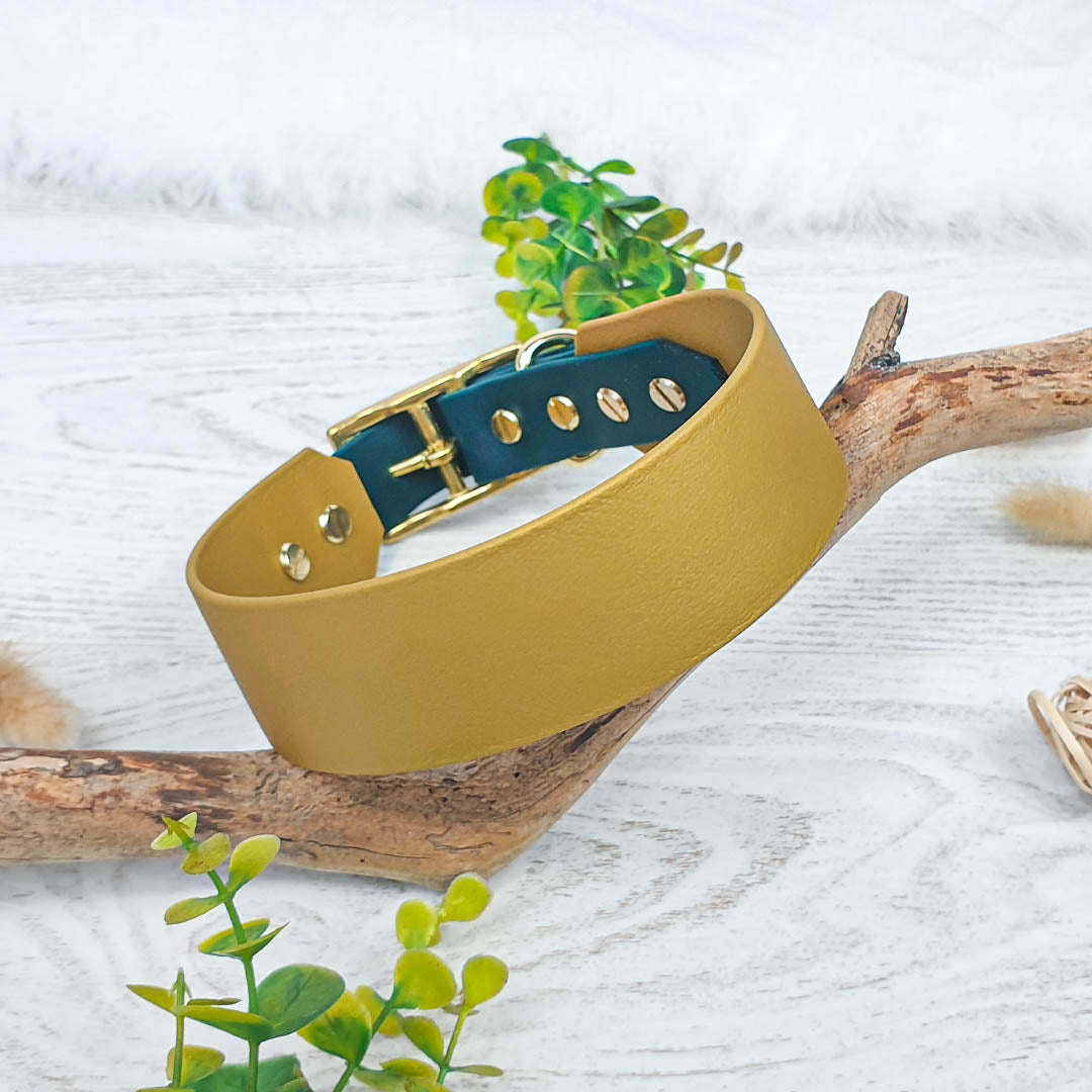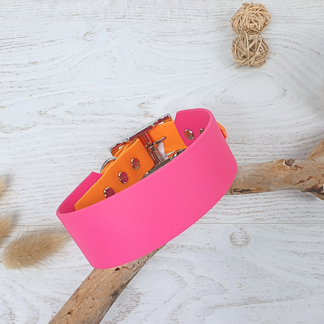 Conçu en biothane de 38 mm de largeur, affiné à 25 mm au niveau de l’attache, il marie robustesse et élégance.