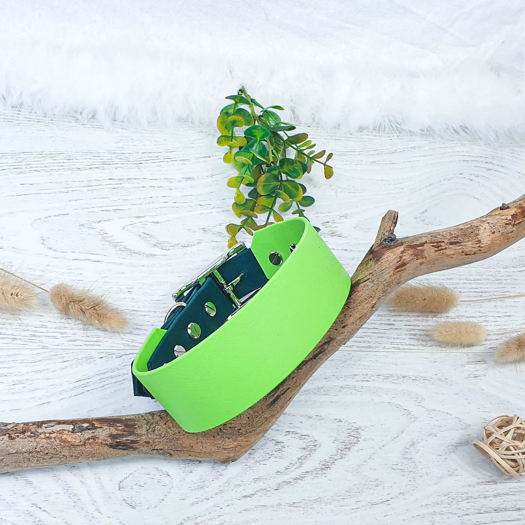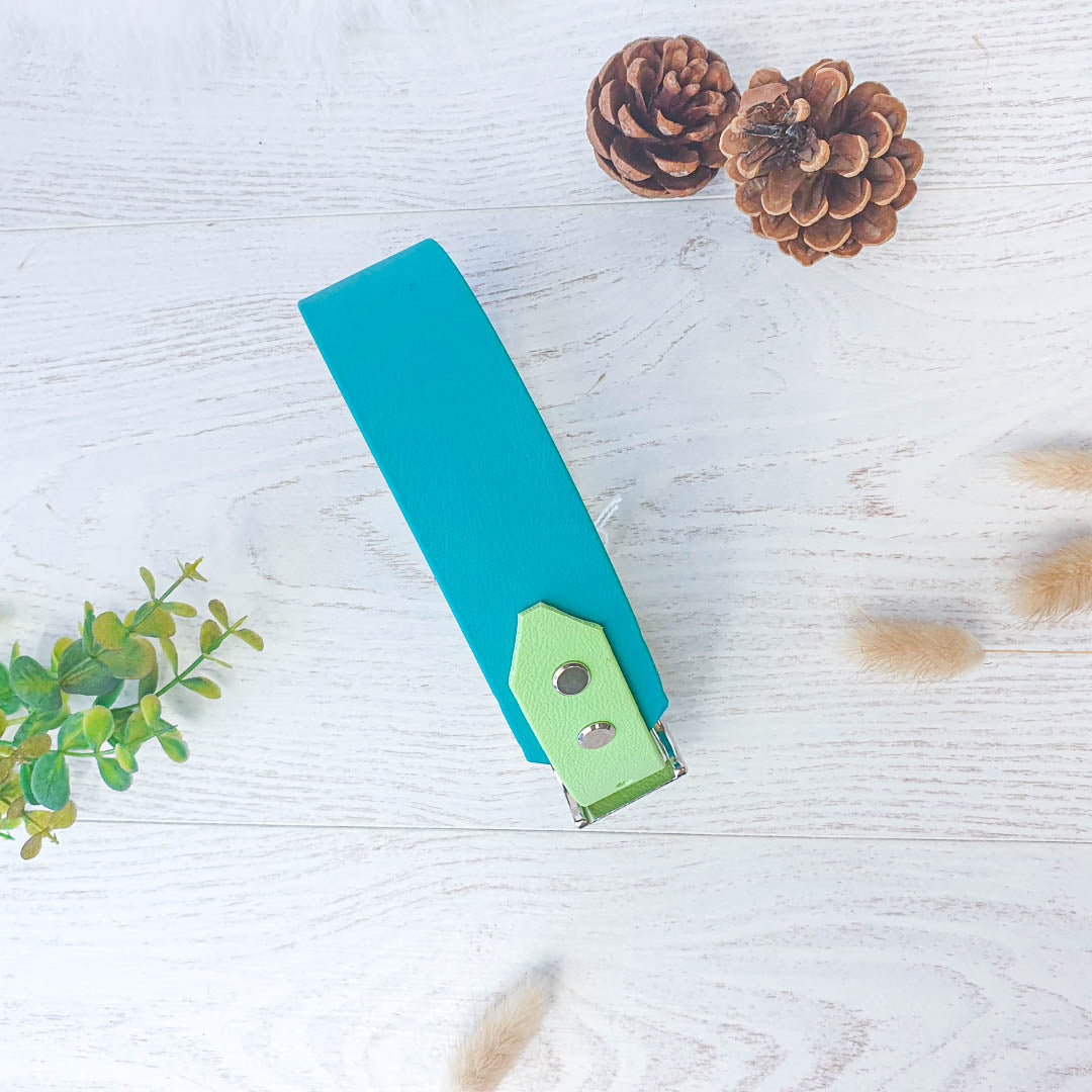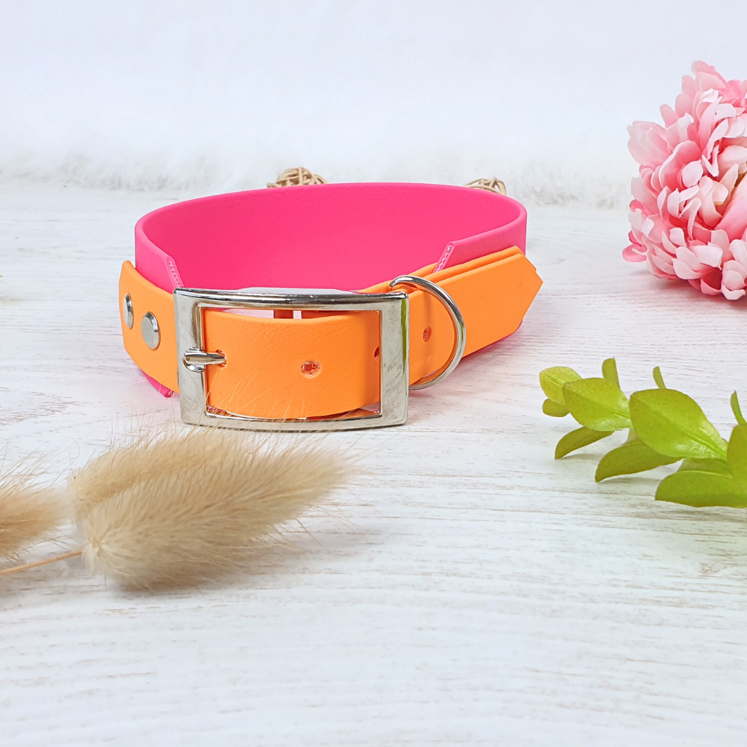 Conçu en biothane de 38 mm de largeur, affiné à 25 mm au niveau de l’attache, il marie robustesse et élégance.