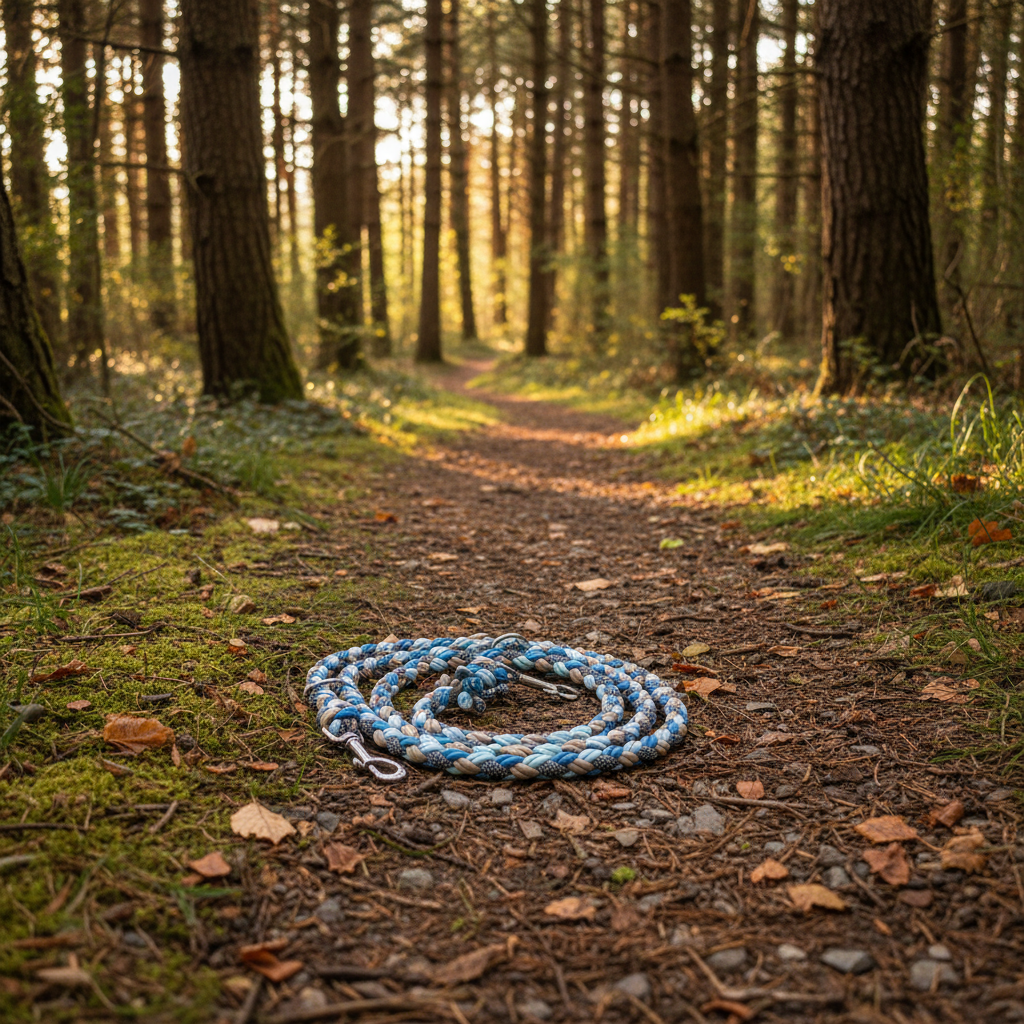 C’est une laisse née de la terre et du vent, tressée à la main pour symboliser l’équilibre entre force et douceur, solidité et beauté.