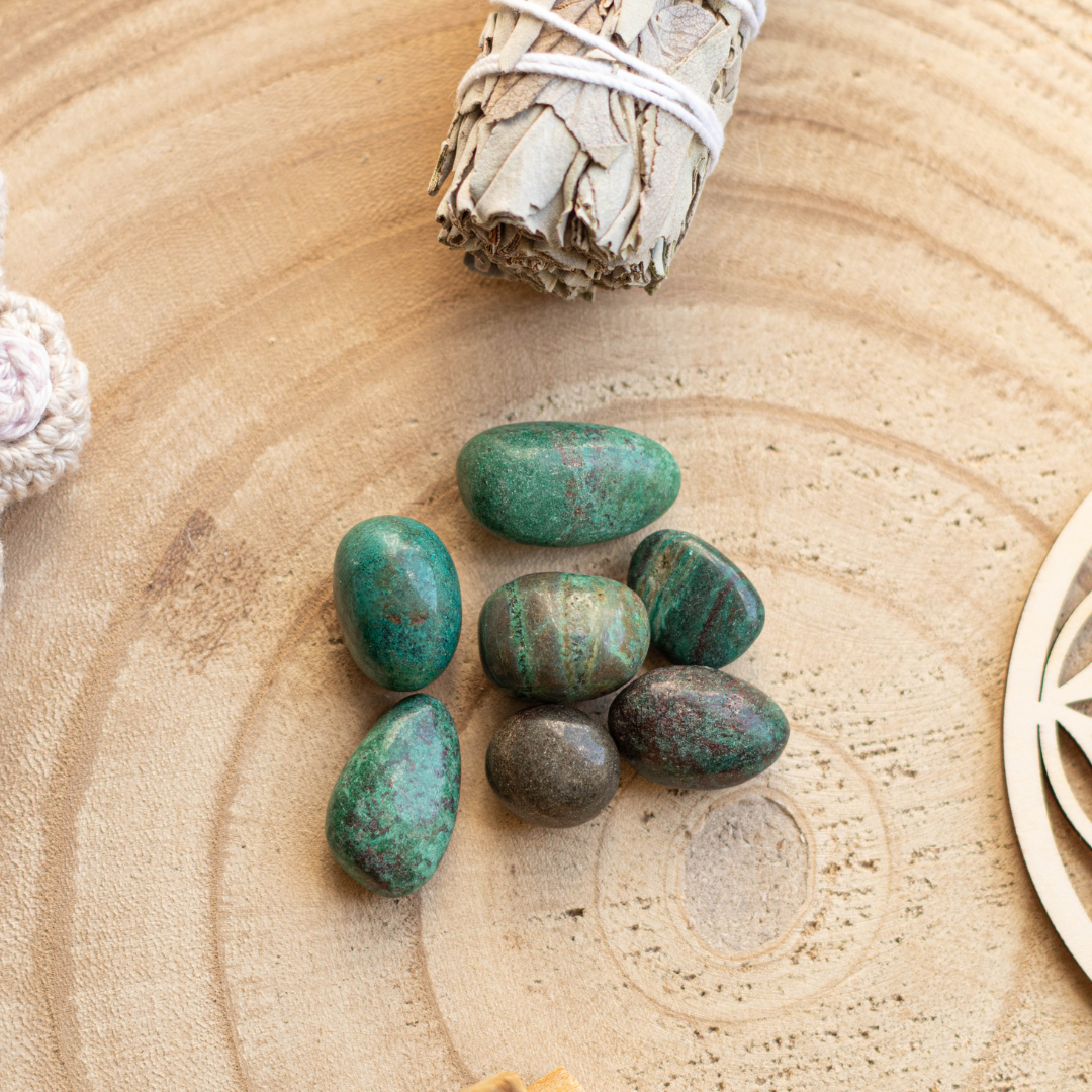 Le chrysocolle est chargée d'une puissante énergie positive qui aide a retrouver sa paix intérieur. Elle incite au pardon, à la compassion, et à la douceur, et renforce les liens émotionnels. Le chrysocolle renforce l'amitié et la tolérance envers les autres. C'est une pierre de paix, d'équilibre et de communication